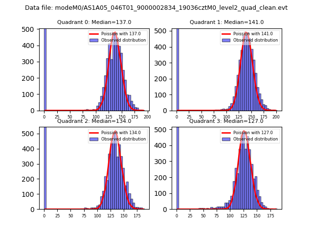 Red curve is a Poisson curve with rate = median count rate of data. |