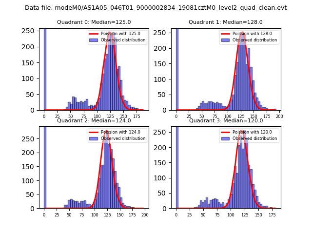 Red curve is a Poisson curve with rate = median count rate of data. |
