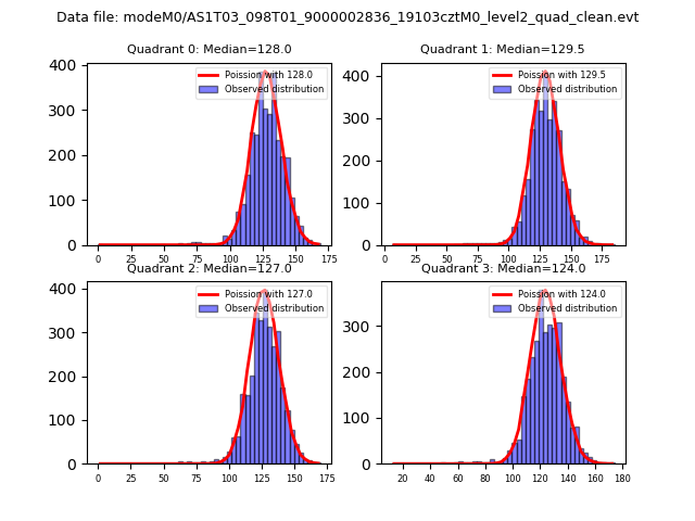 Red curve is a Poisson curve with rate = median count rate of data. |