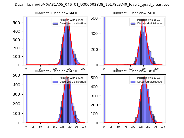 Red curve is a Poisson curve with rate = median count rate of data. |