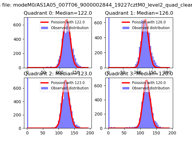 Red curve is a Poisson curve with rate = median count rate of data. |