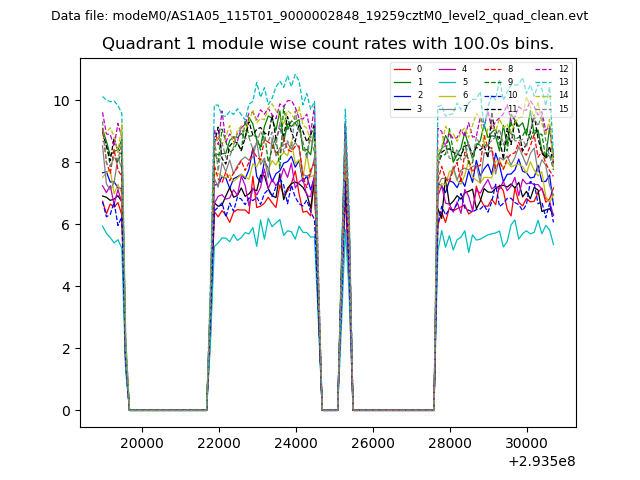 Module-wise count rates for Quadrant A