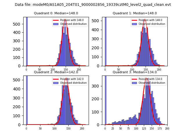 Red curve is a Poisson curve with rate = median count rate of data. |