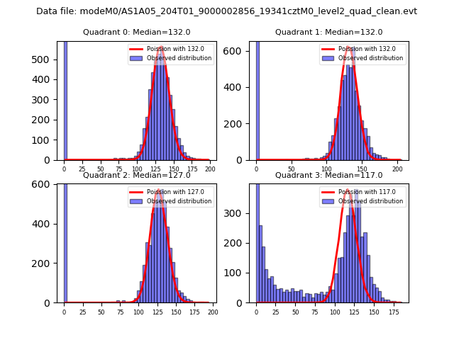 Red curve is a Poisson curve with rate = median count rate of data. |