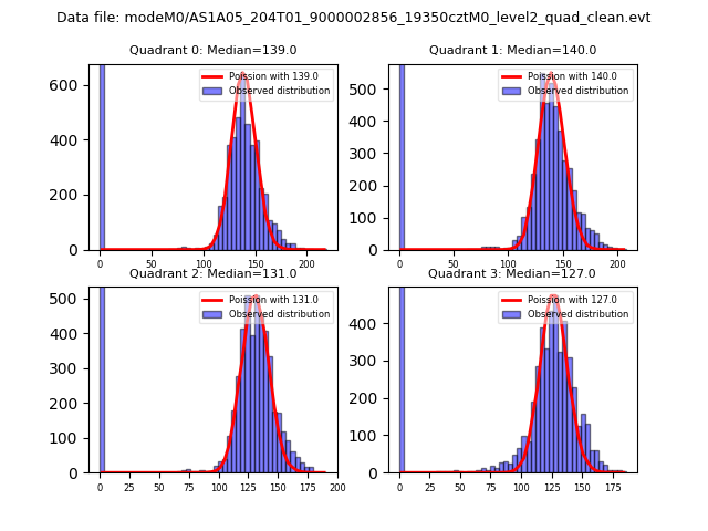 Red curve is a Poisson curve with rate = median count rate of data. |