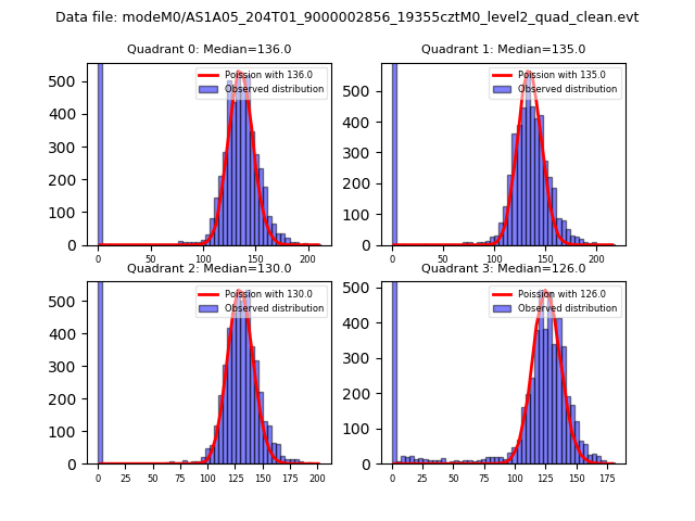 Red curve is a Poisson curve with rate = median count rate of data. |