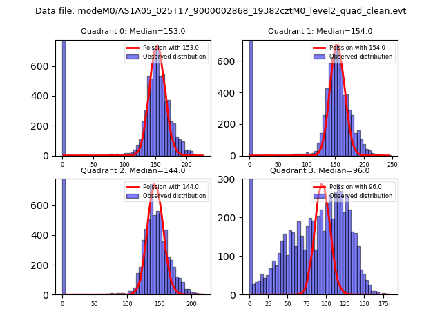 Red curve is a Poisson curve with rate = median count rate of data. |