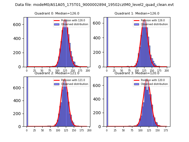 Red curve is a Poisson curve with rate = median count rate of data. |