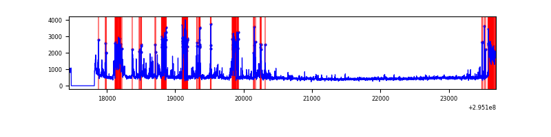 Red curve is a Poisson curve with rate = median count rate of data. |