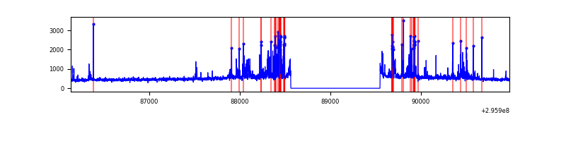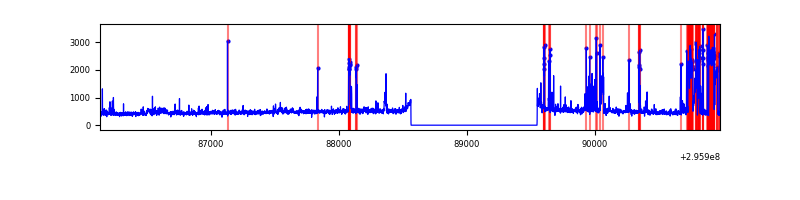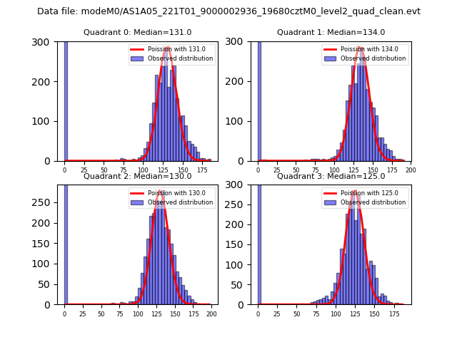 Red curve is a Poisson curve with rate = median count rate of data. |
