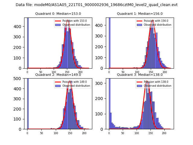Red curve is a Poisson curve with rate = median count rate of data. |