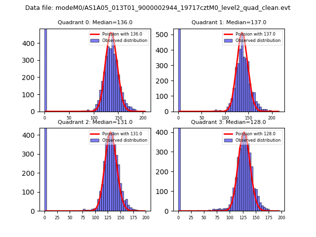 Red curve is a Poisson curve with rate = median count rate of data. |