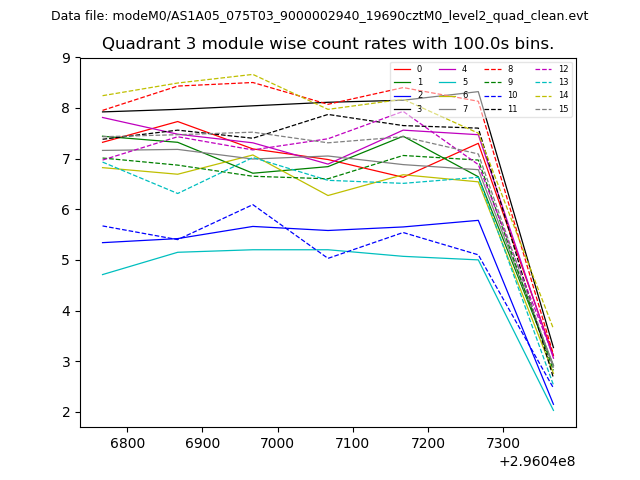 Module-wise count rates for Quadrant A