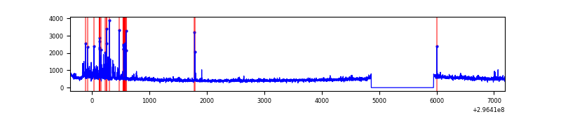 Red curve is a Poisson curve with rate = median count rate of data. |