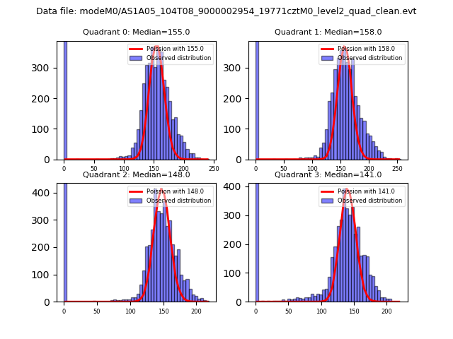 Red curve is a Poisson curve with rate = median count rate of data. |