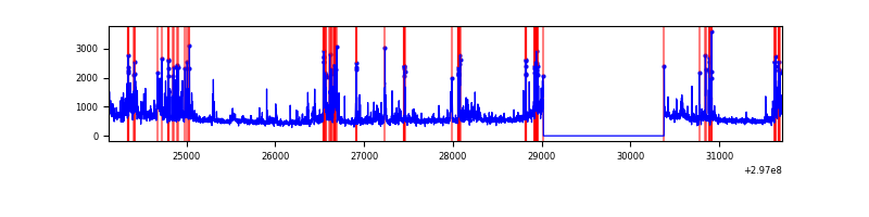 Red curve is a Poisson curve with rate = median count rate of data. |