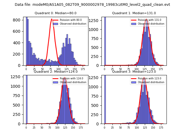 Red curve is a Poisson curve with rate = median count rate of data. |