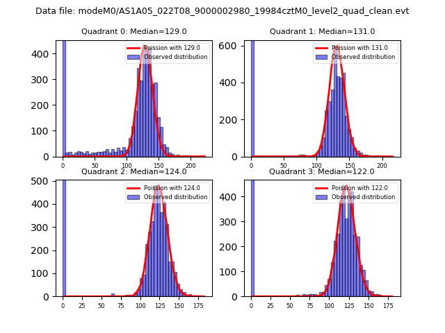 Red curve is a Poisson curve with rate = median count rate of data. |