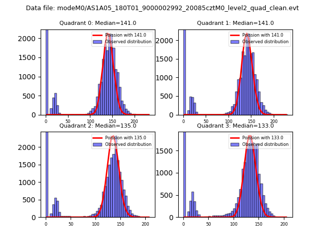 Red curve is a Poisson curve with rate = median count rate of data. |