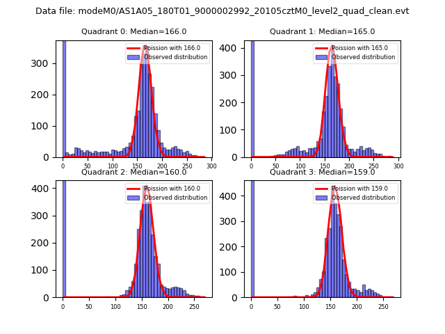 Red curve is a Poisson curve with rate = median count rate of data. |
