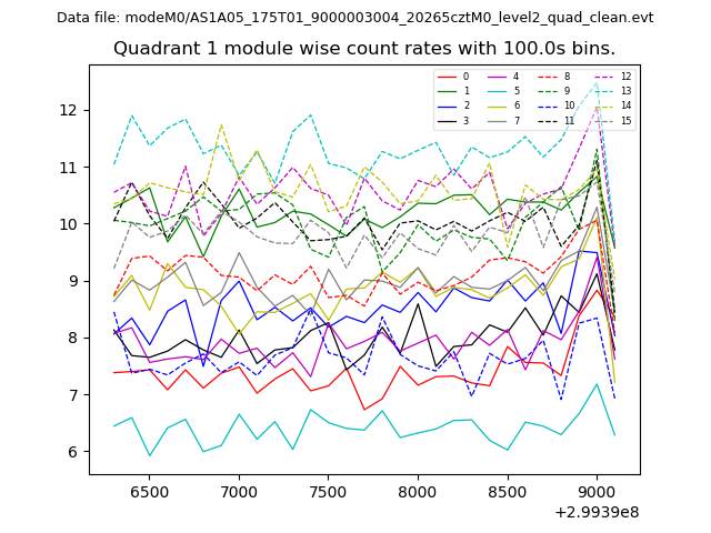 Module-wise count rates for Quadrant A
