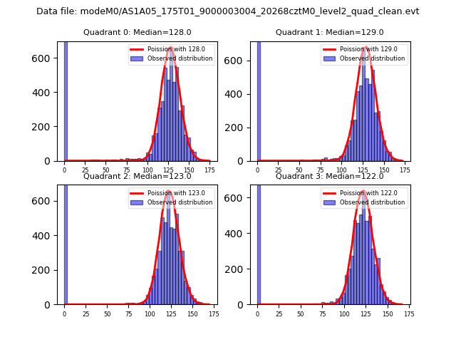 Red curve is a Poisson curve with rate = median count rate of data. |
