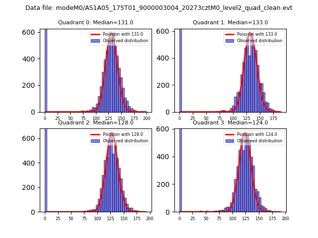 Red curve is a Poisson curve with rate = median count rate of data. |