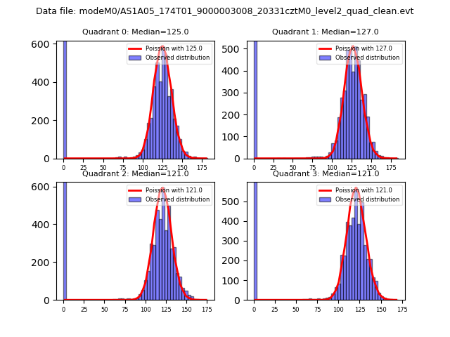 Red curve is a Poisson curve with rate = median count rate of data. |