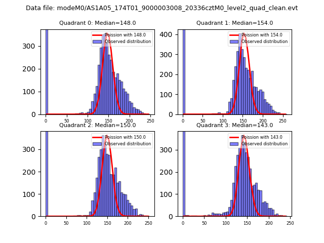 Red curve is a Poisson curve with rate = median count rate of data. |