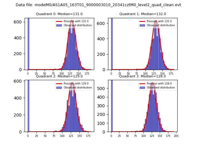 Red curve is a Poisson curve with rate = median count rate of data. |