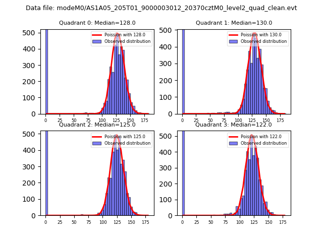 Red curve is a Poisson curve with rate = median count rate of data. |