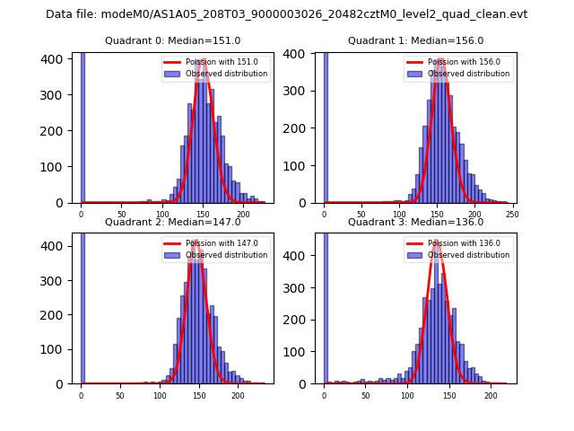 Red curve is a Poisson curve with rate = median count rate of data. |