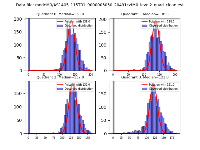 Red curve is a Poisson curve with rate = median count rate of data. |