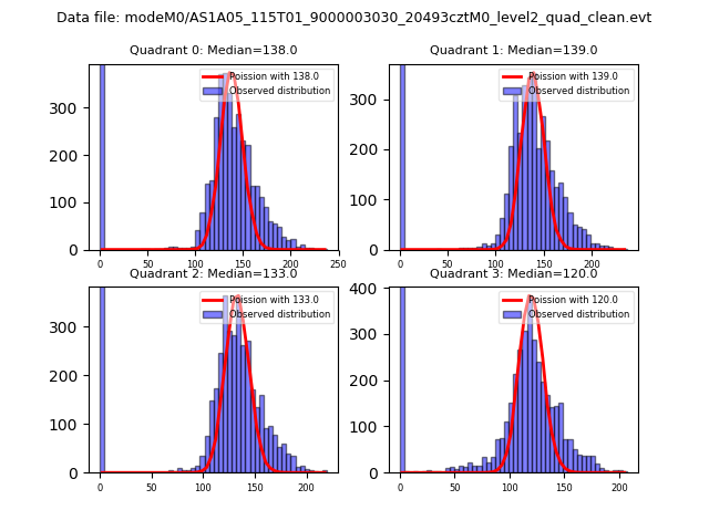 Red curve is a Poisson curve with rate = median count rate of data. |