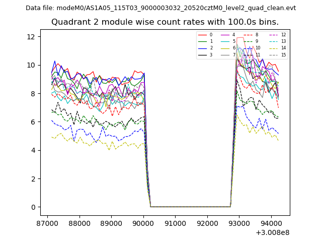 Module-wise count rates for Quadrant A