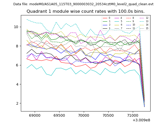 Module-wise count rates for Quadrant A