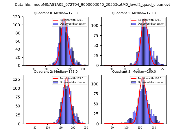 Red curve is a Poisson curve with rate = median count rate of data. |