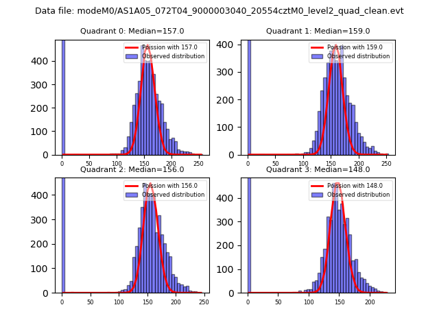 Red curve is a Poisson curve with rate = median count rate of data. |