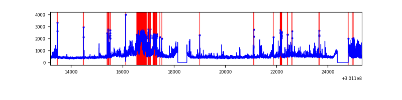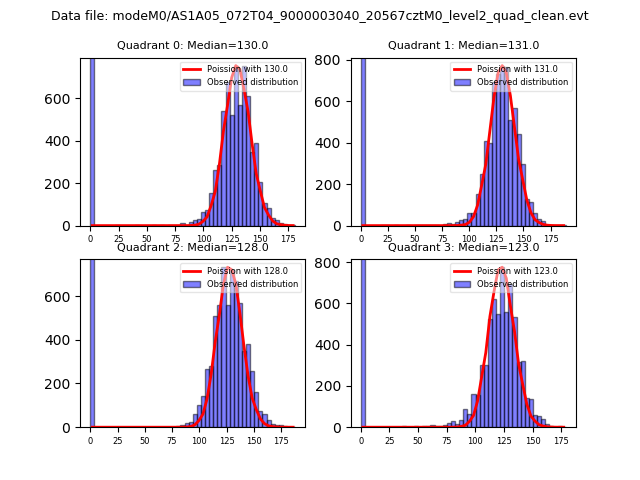 Red curve is a Poisson curve with rate = median count rate of data. |