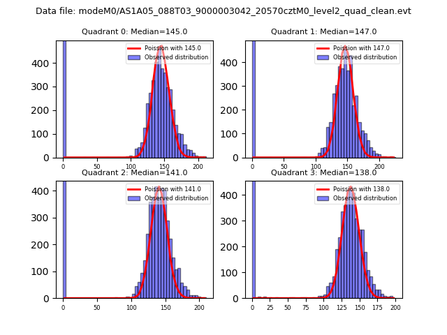 Red curve is a Poisson curve with rate = median count rate of data. |