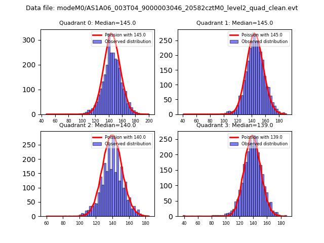 Red curve is a Poisson curve with rate = median count rate of data. |