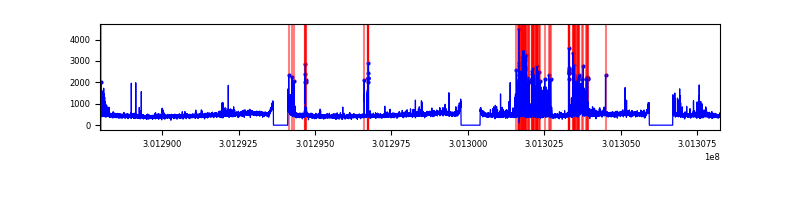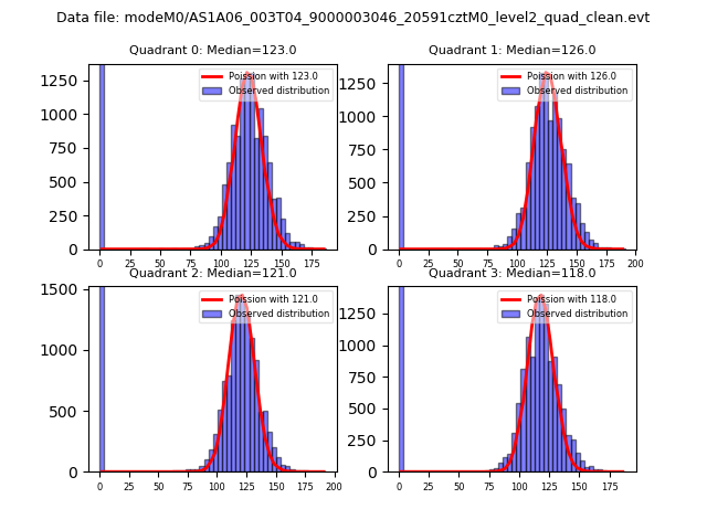 Red curve is a Poisson curve with rate = median count rate of data. |
