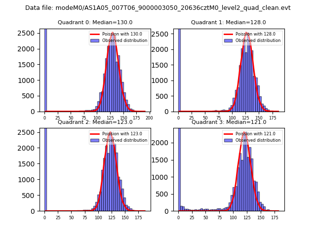 Red curve is a Poisson curve with rate = median count rate of data. |