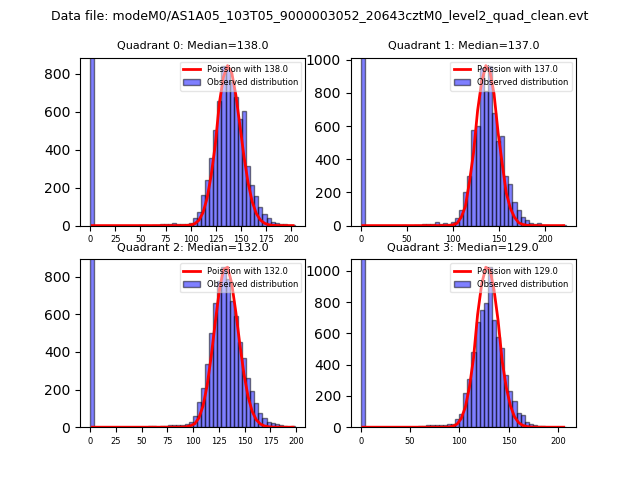Red curve is a Poisson curve with rate = median count rate of data. |