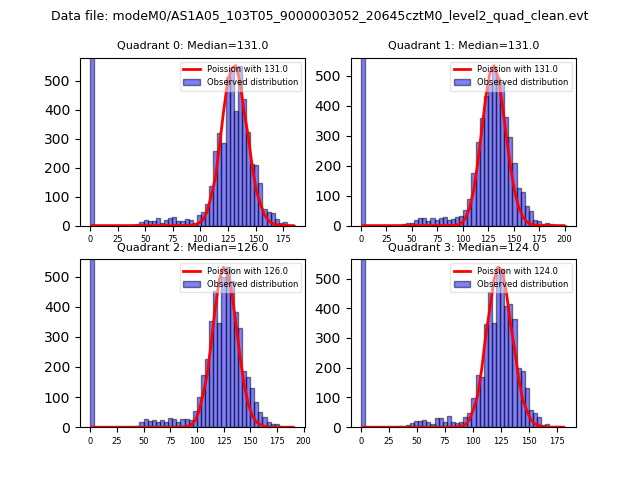 Red curve is a Poisson curve with rate = median count rate of data. |