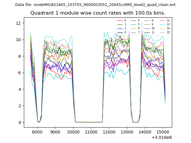 Module-wise count rates for Quadrant A