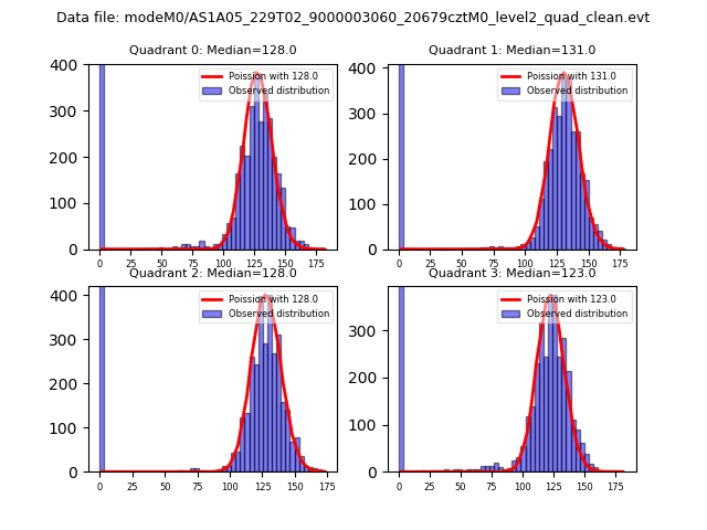 Red curve is a Poisson curve with rate = median count rate of data. |