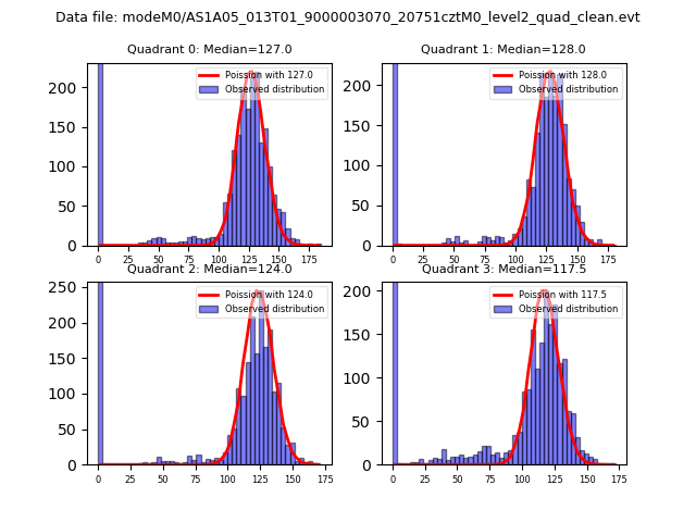 Red curve is a Poisson curve with rate = median count rate of data. |