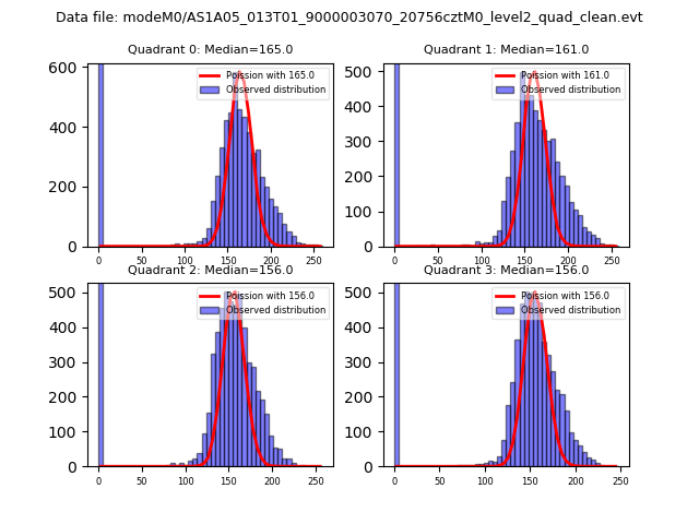 Red curve is a Poisson curve with rate = median count rate of data. |
