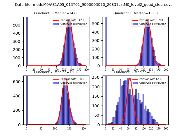 Red curve is a Poisson curve with rate = median count rate of data. |